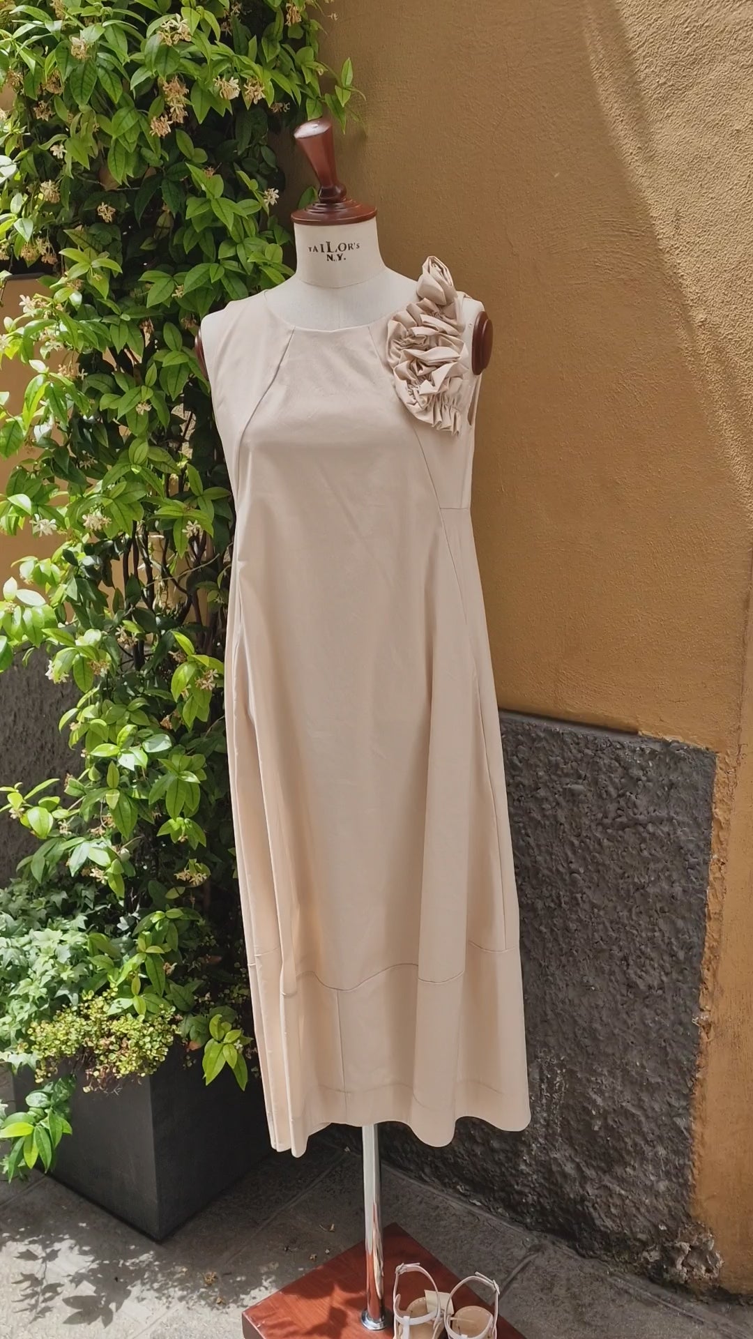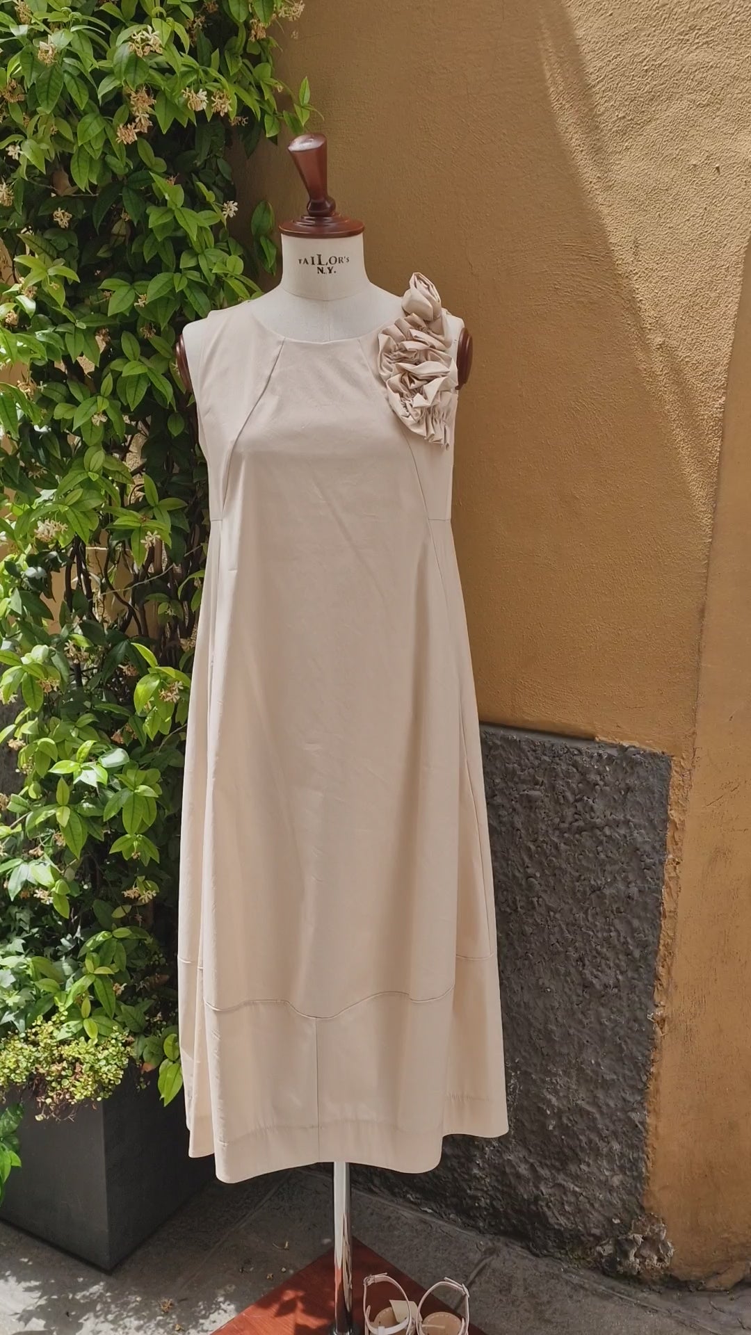 Abito Lungo cotone vela, applicazione Rose