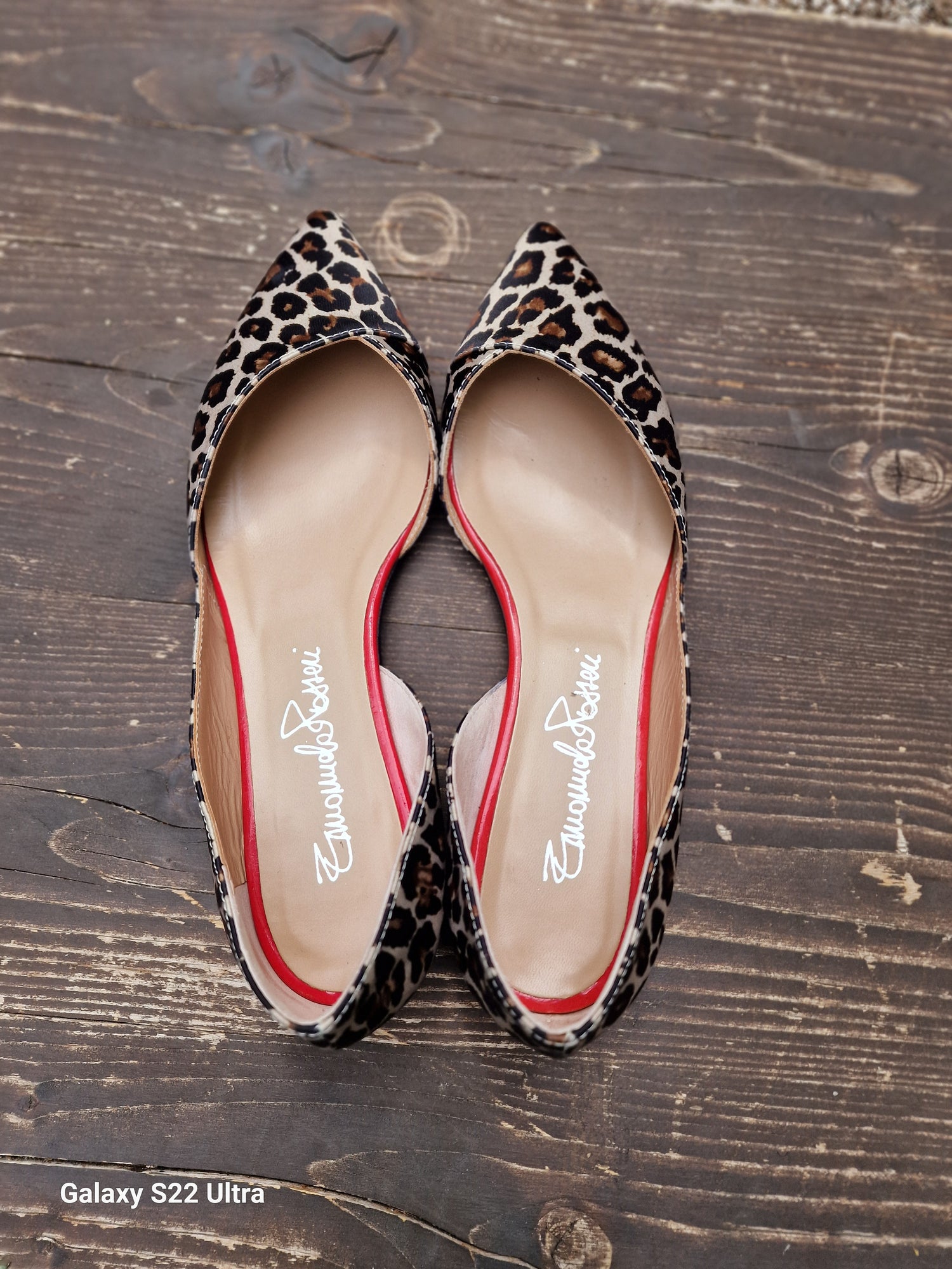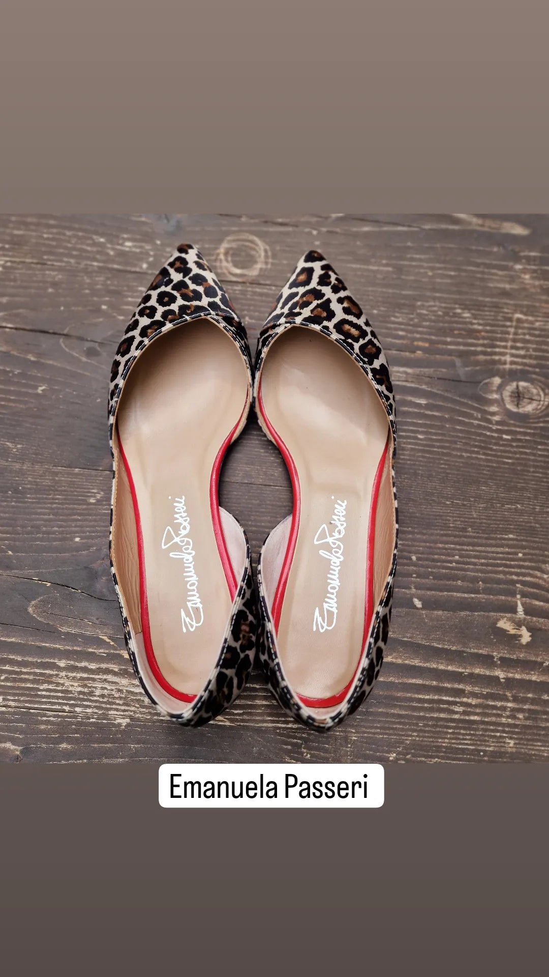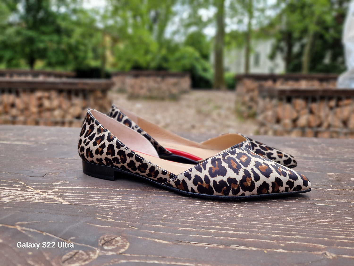 Ballerina Flat in pelle, rivestito in raso con stampa animalier.