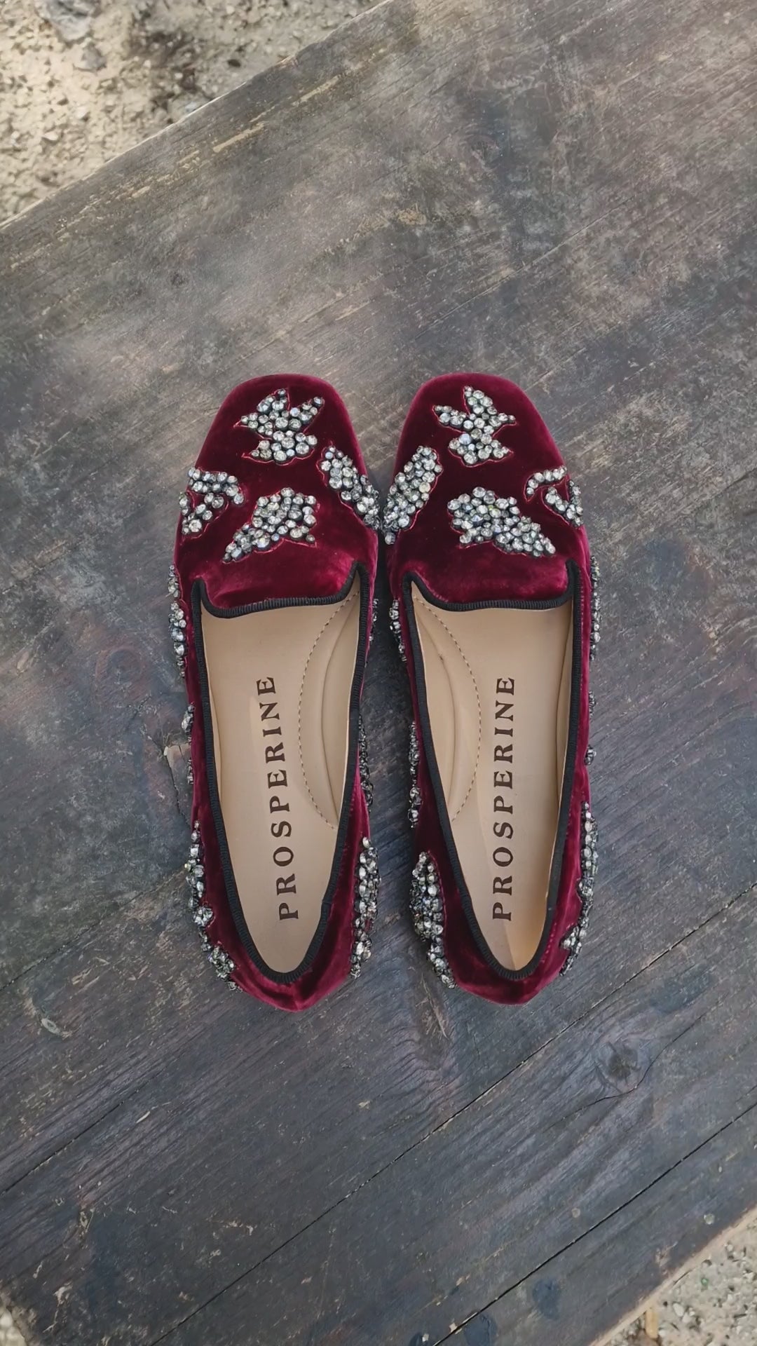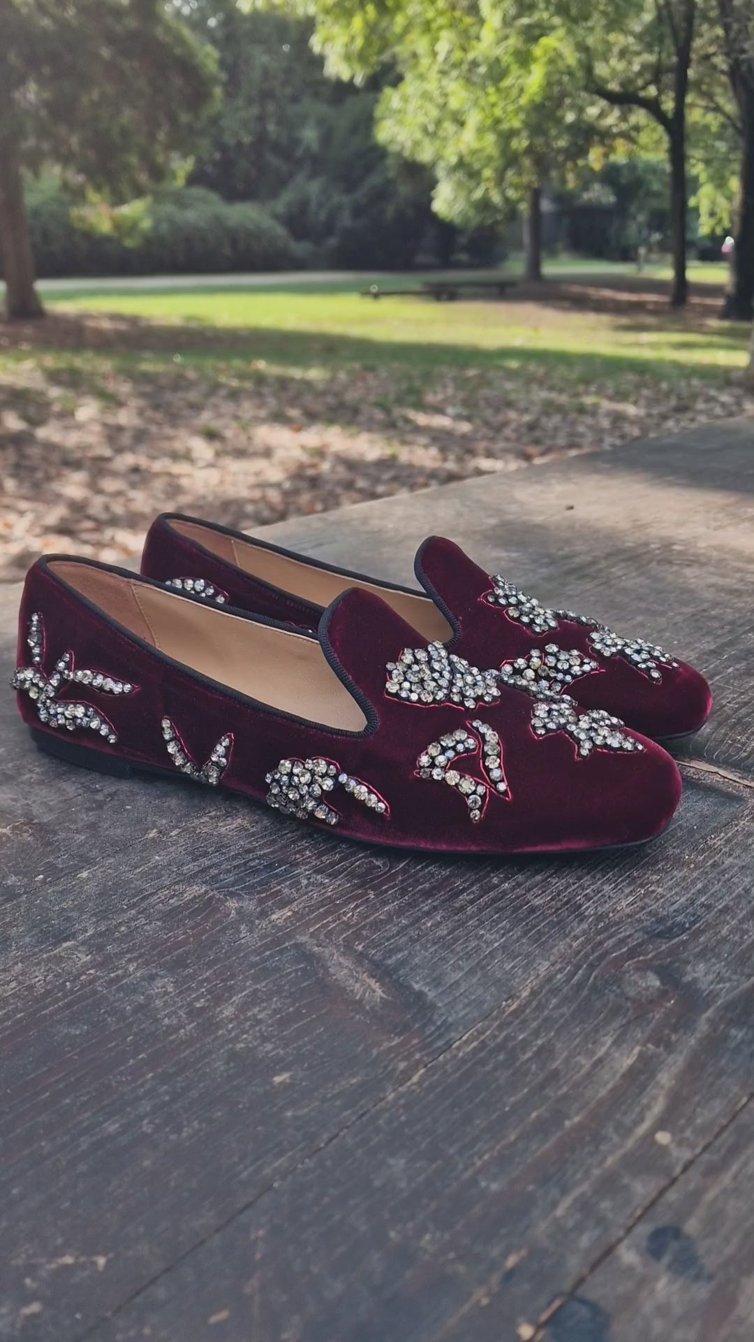 Ballerina Prosperine in velluto bordeaux applicazione Gioiello