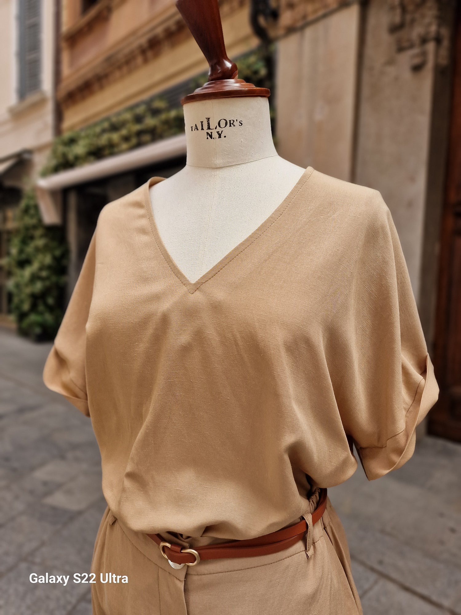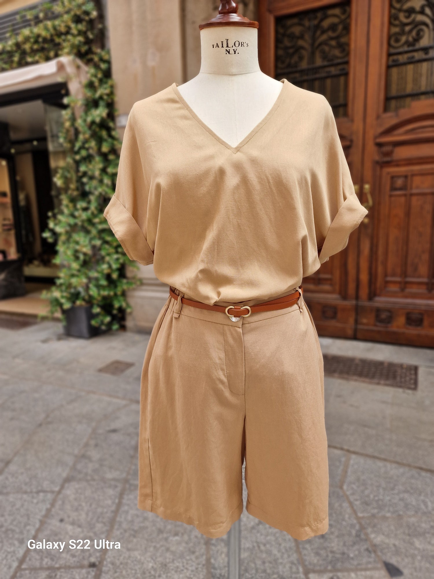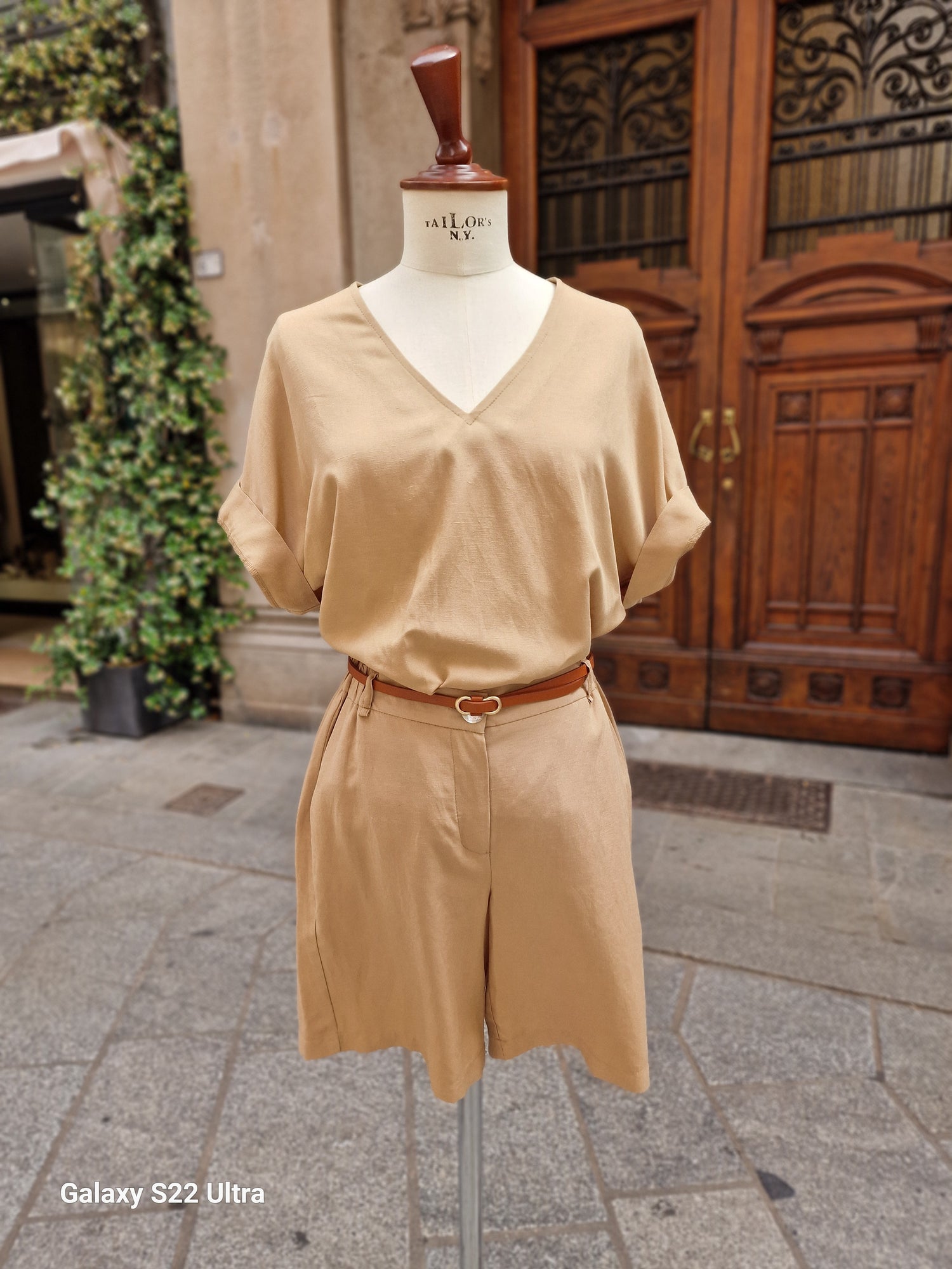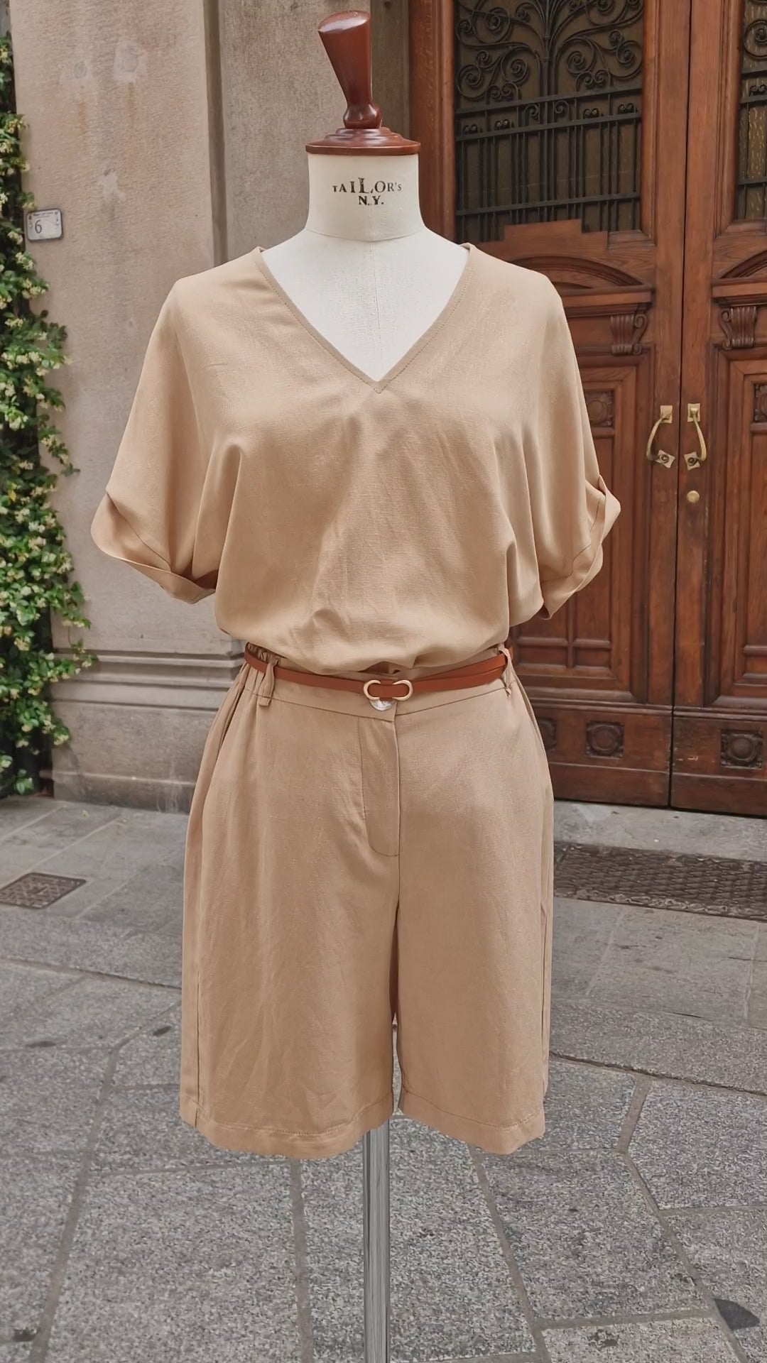 Completo, Casacca e Bermuda, tessuto leggerissimo, fresco e morbido a contatto con la pelle. Tessuto Lino e Viscosa
