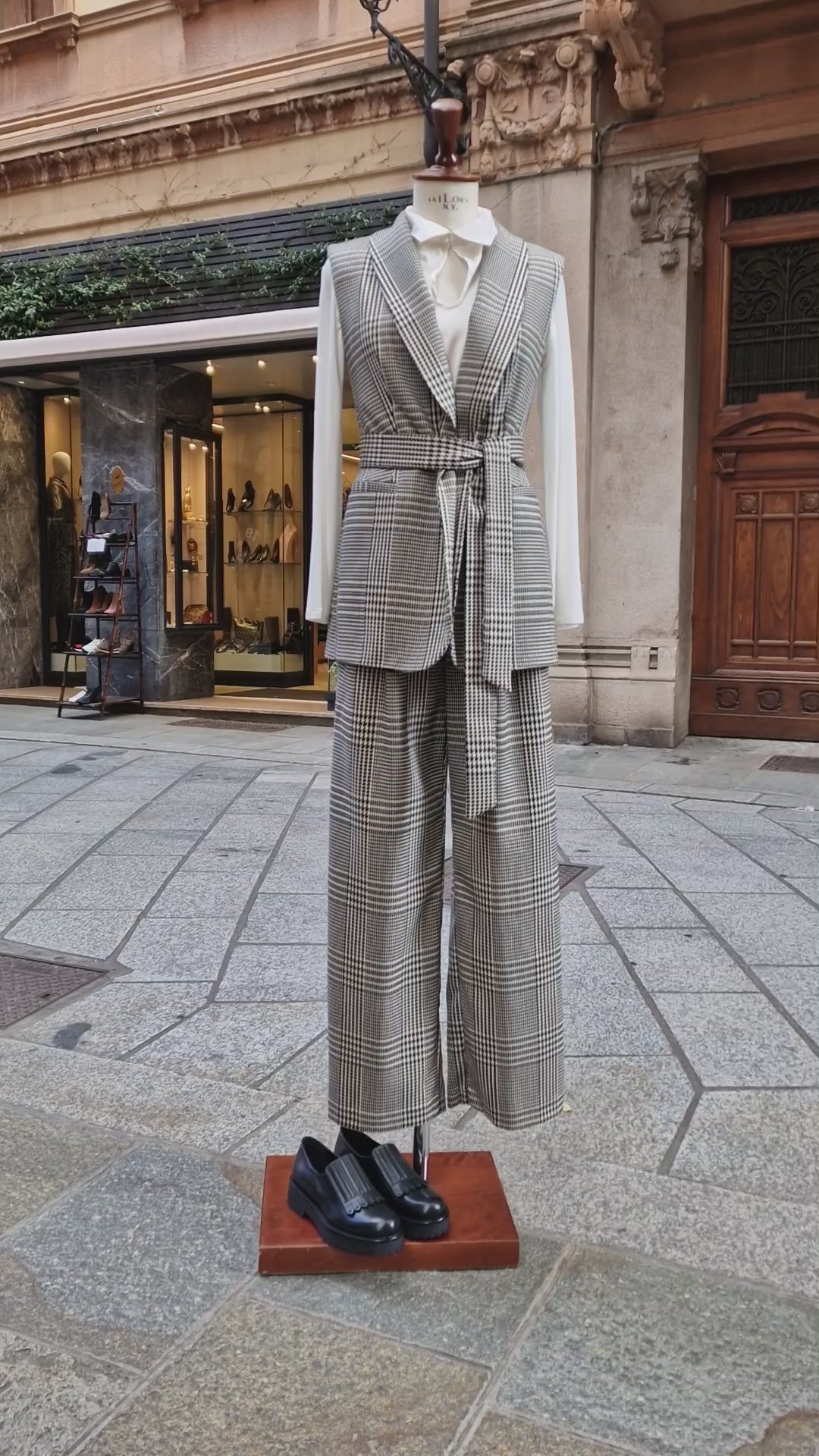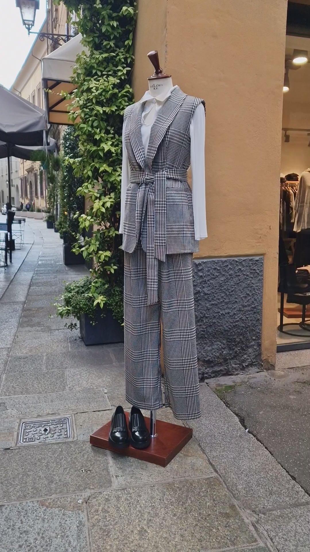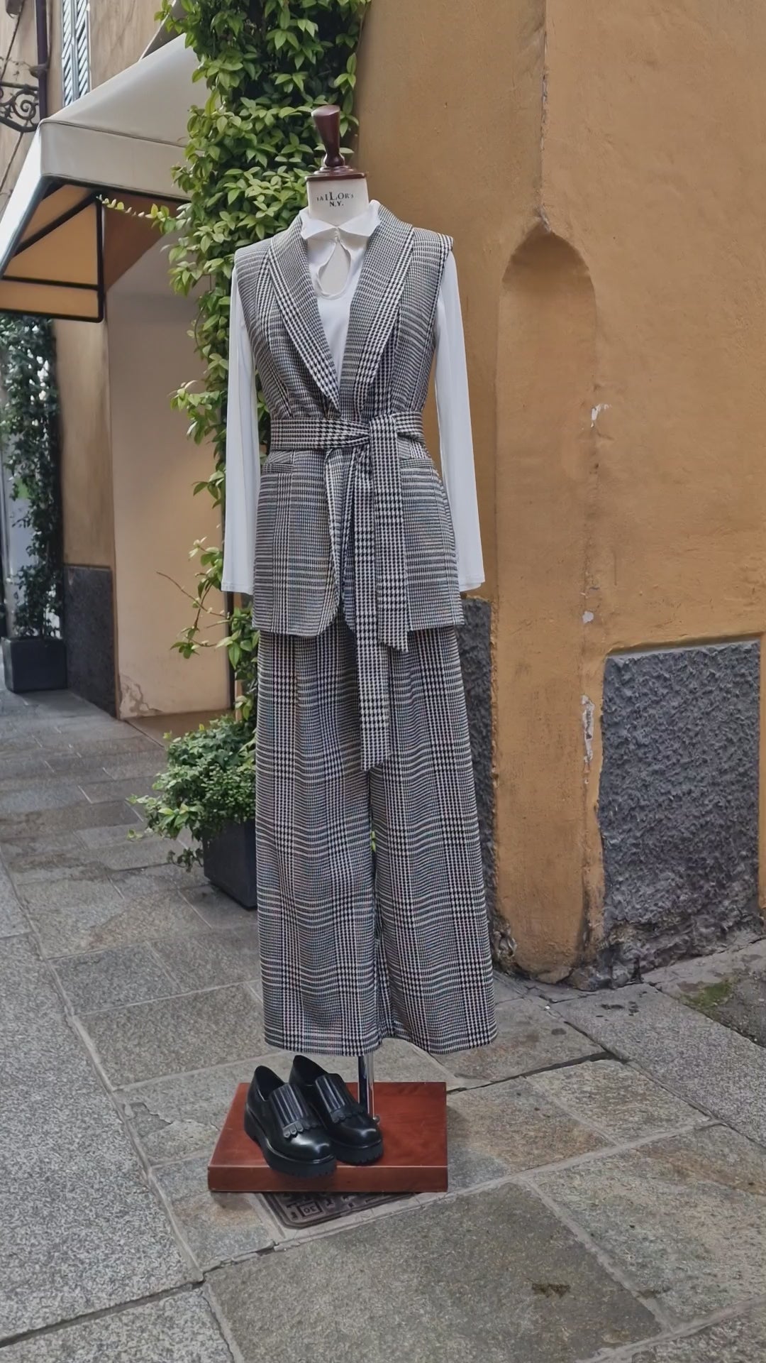 Completo Giacca smanicata e pantalone, pied de poule