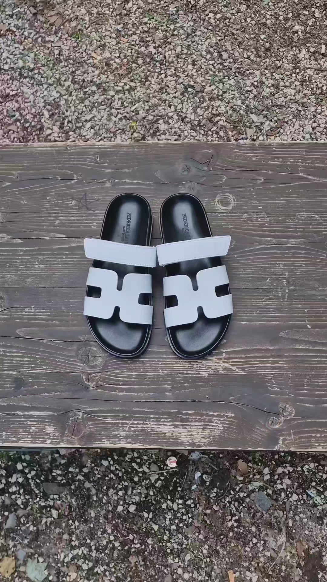 Sandalo in pelle e suola in gomma naturale, con motivo ad H