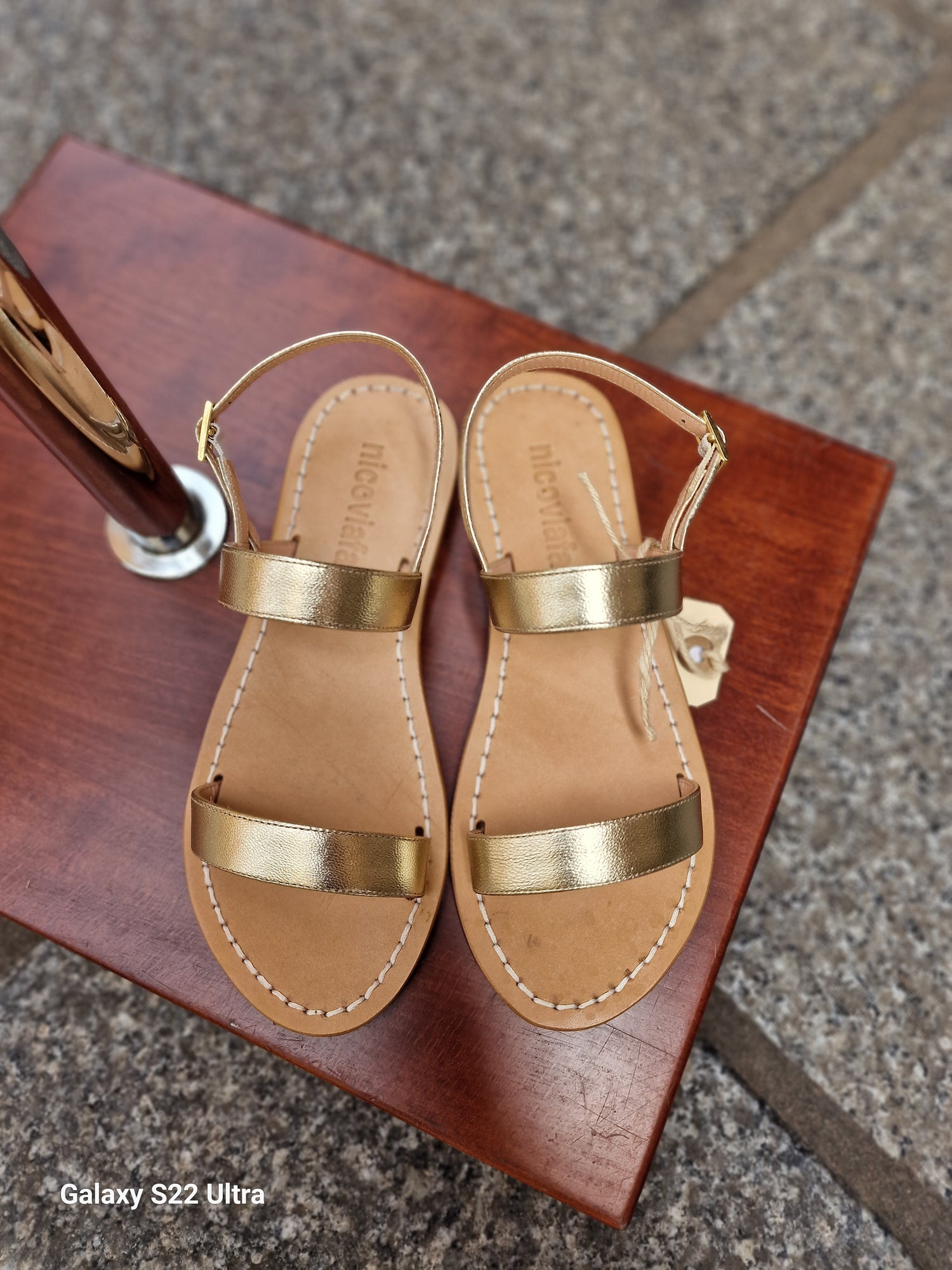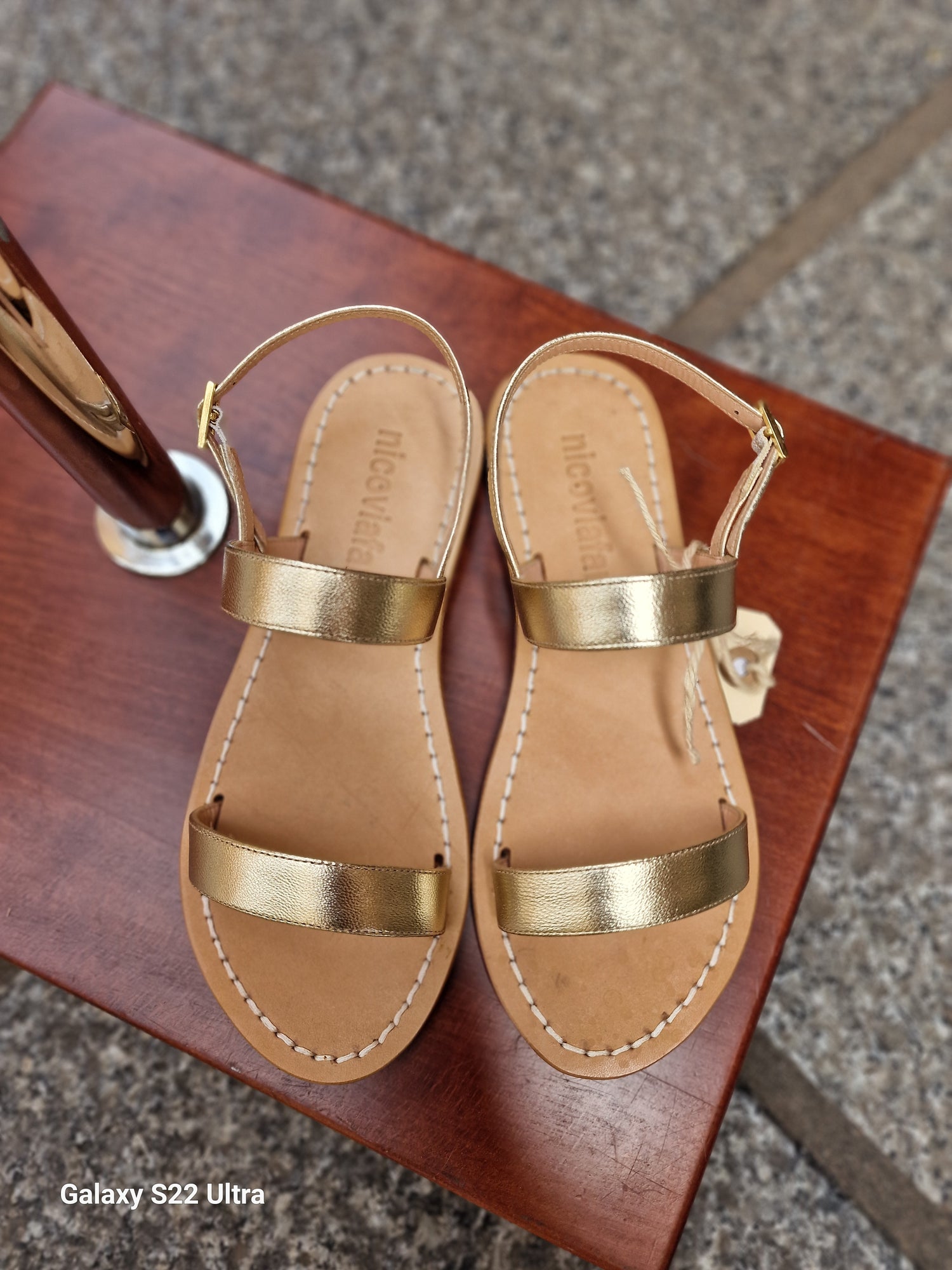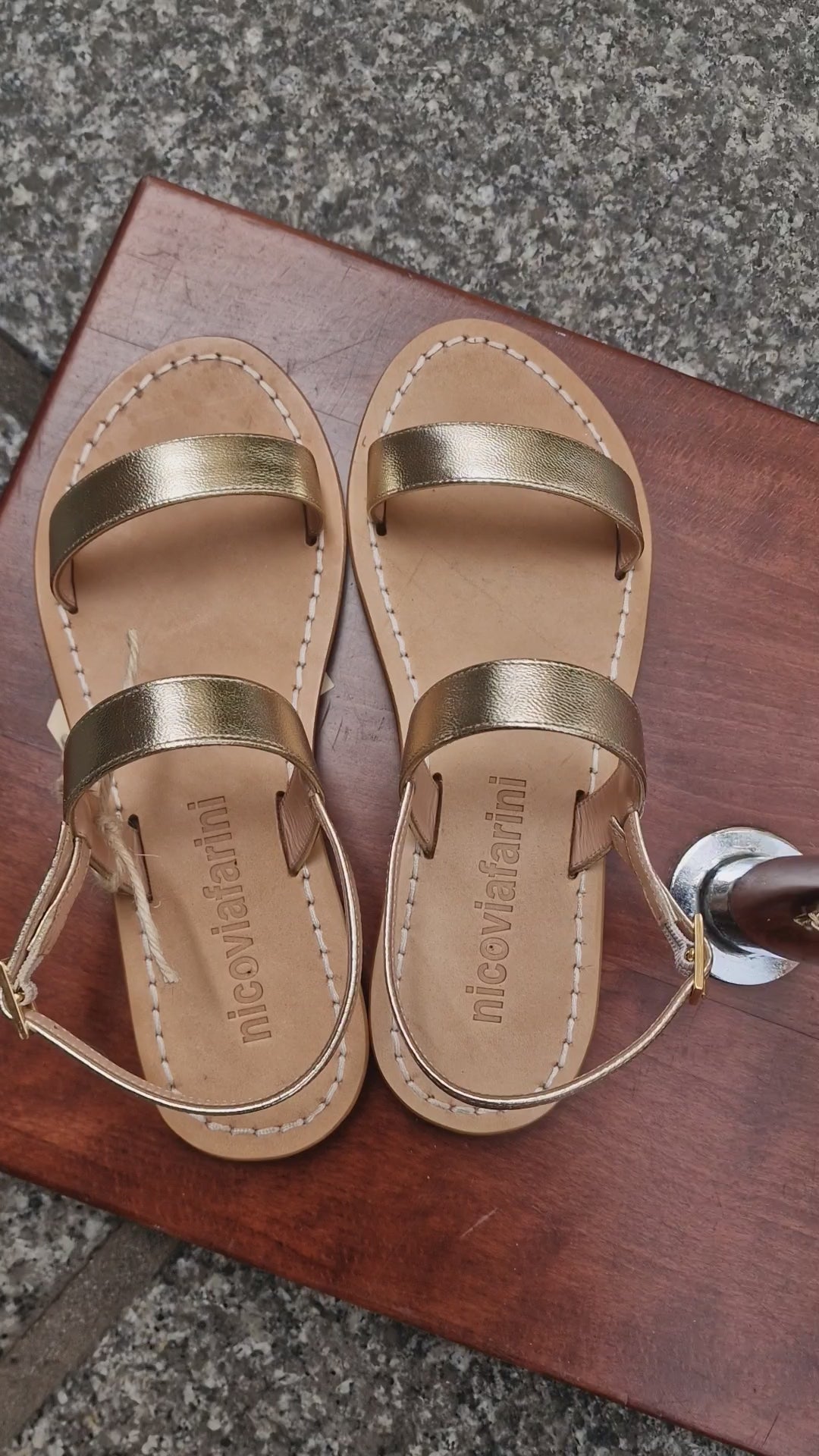 Sandalo modello Positano, in pelle e suola in cuoio, realizzato in Italia, con ottime materie prime e finiture
